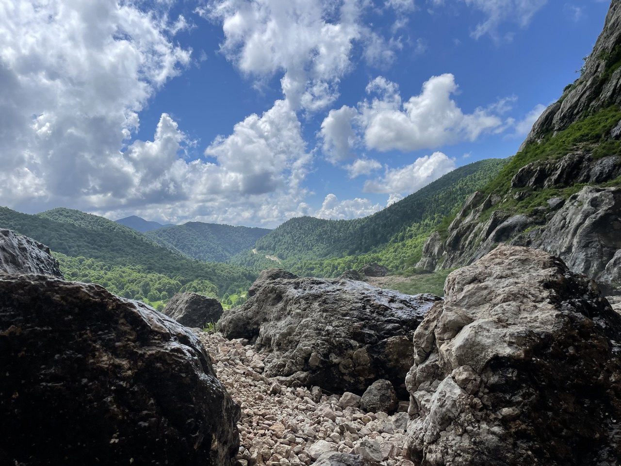 Маршрут проходит через лесной массив к водопадам реки Кутанка и далее — к вершине горы Монах.